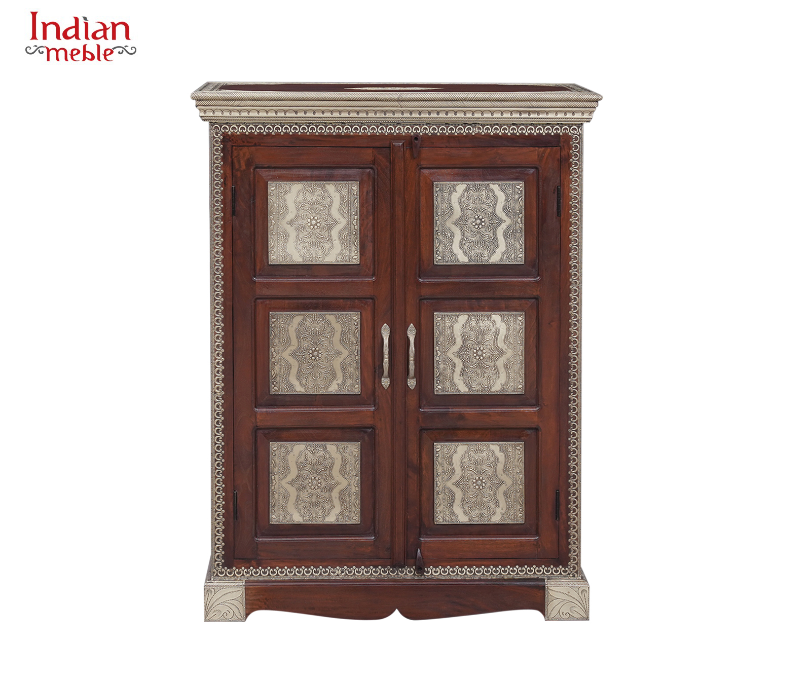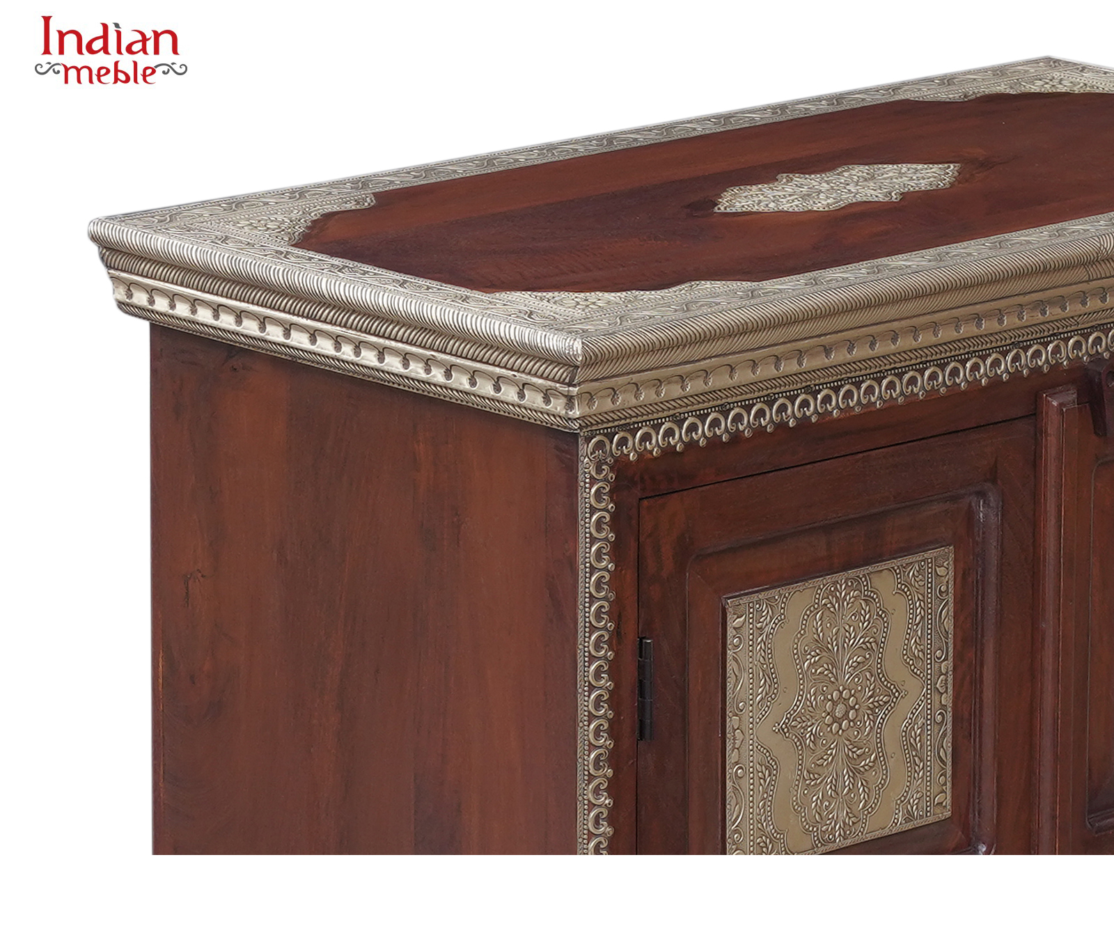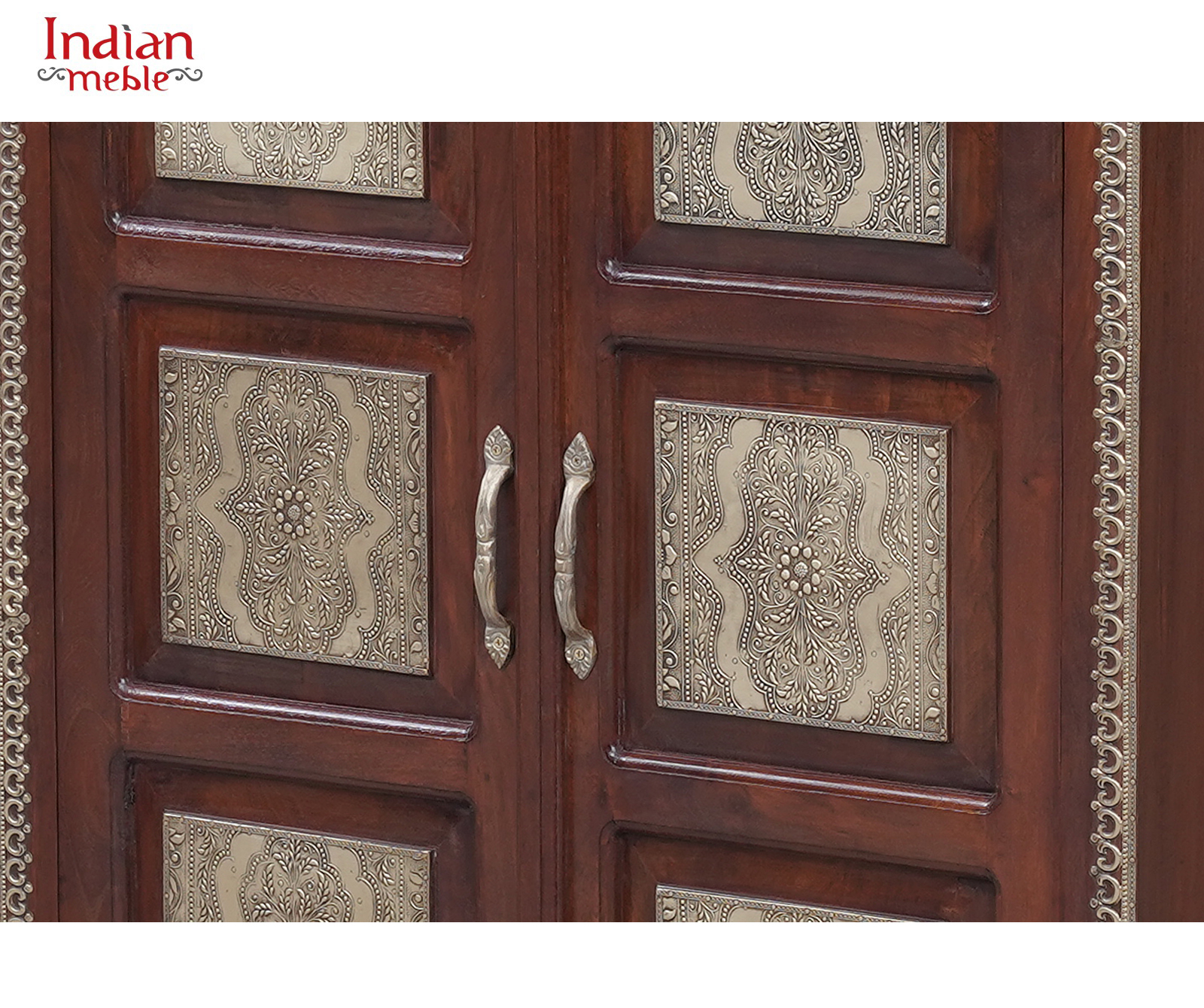 Elegancka komoda wykonana z litego drewna mango, wyróżniająca się klasyczną formą oraz dekoracyjnymi panelami na frontach drzwi. Naturalny, ciepły odcień drewna w połączeniu z ozdobnymi wstawkami nadaje meblowi wyjątkowy charakter inspirowany stylem orientalnym i kolonialnym.