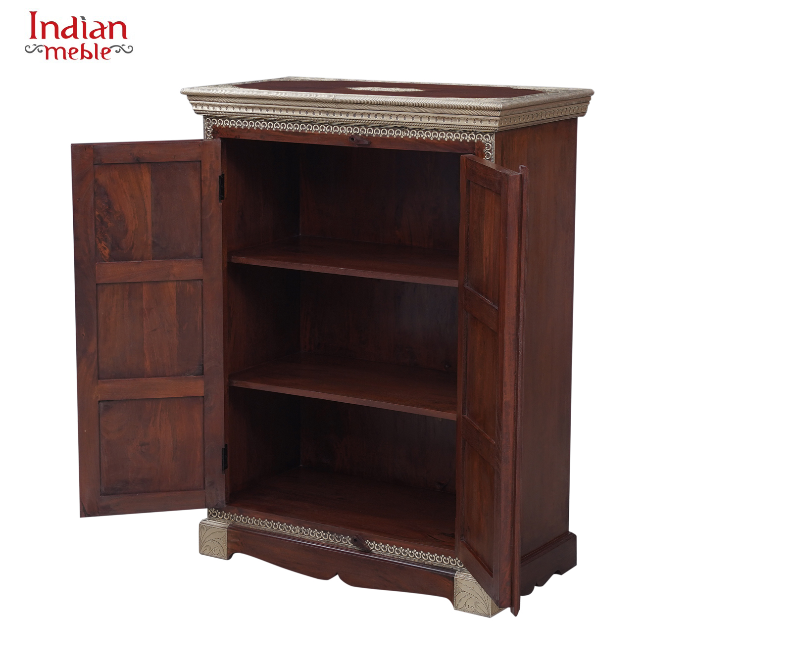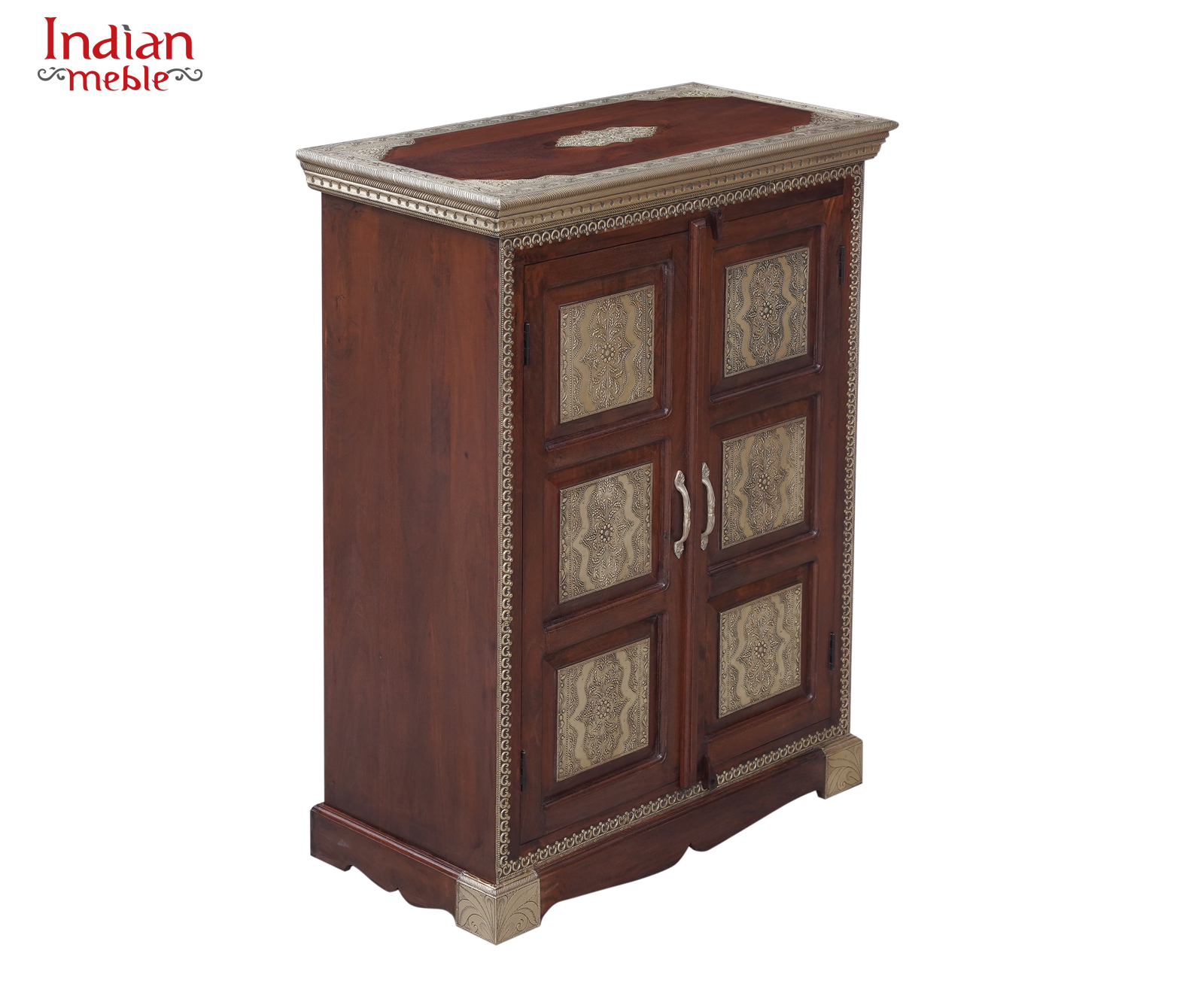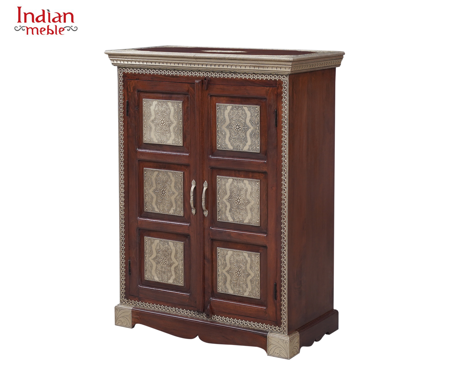 Elegancka komoda wykonana z litego drewna mango, wyróżniająca się klasyczną formą oraz dekoracyjnymi panelami na frontach drzwi. Naturalny, ciepły odcień drewna w połączeniu z ozdobnymi wstawkami nadaje meblowi wyjątkowy charakter inspirowany stylem orientalnym i kolonialnym.