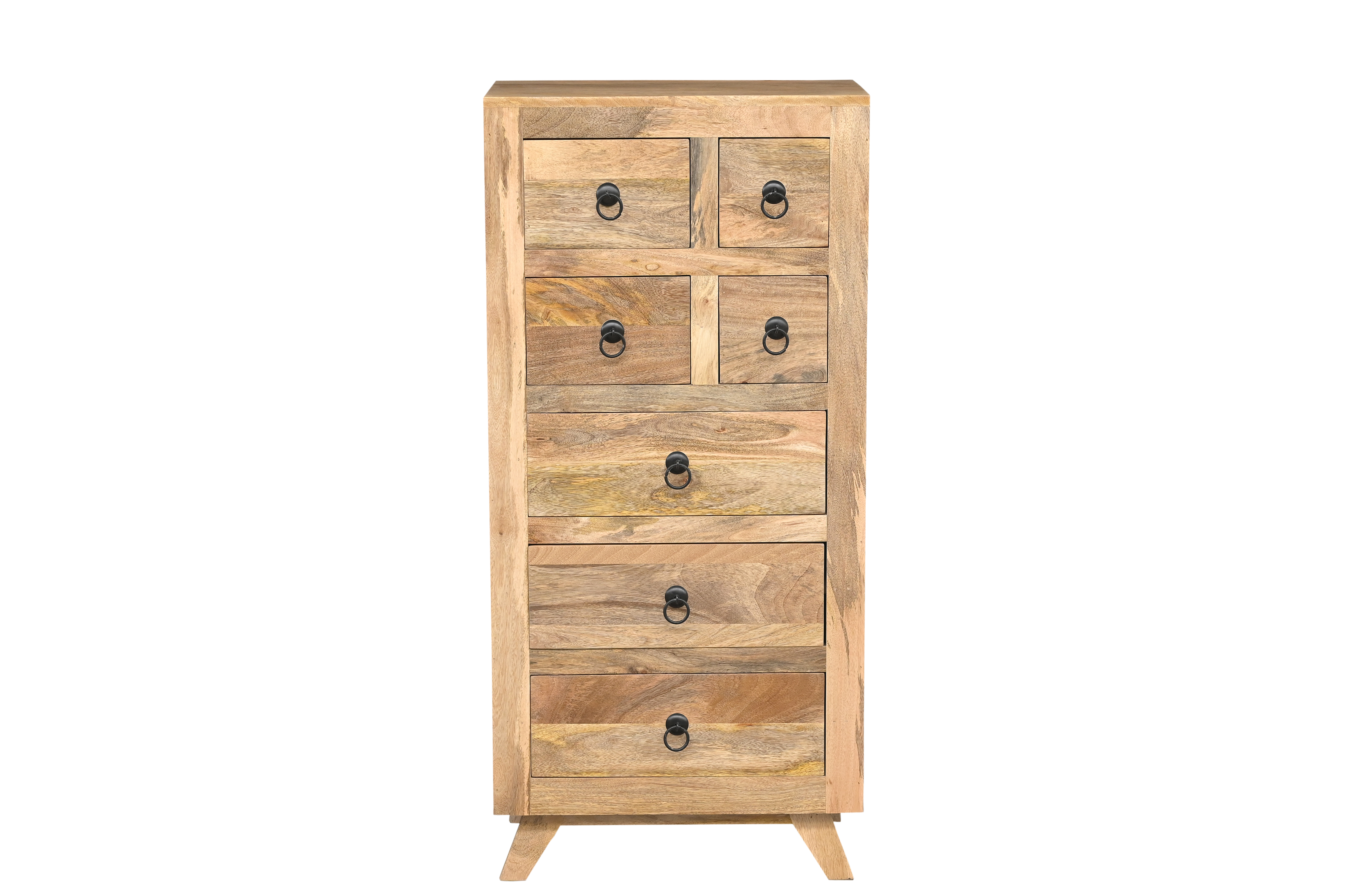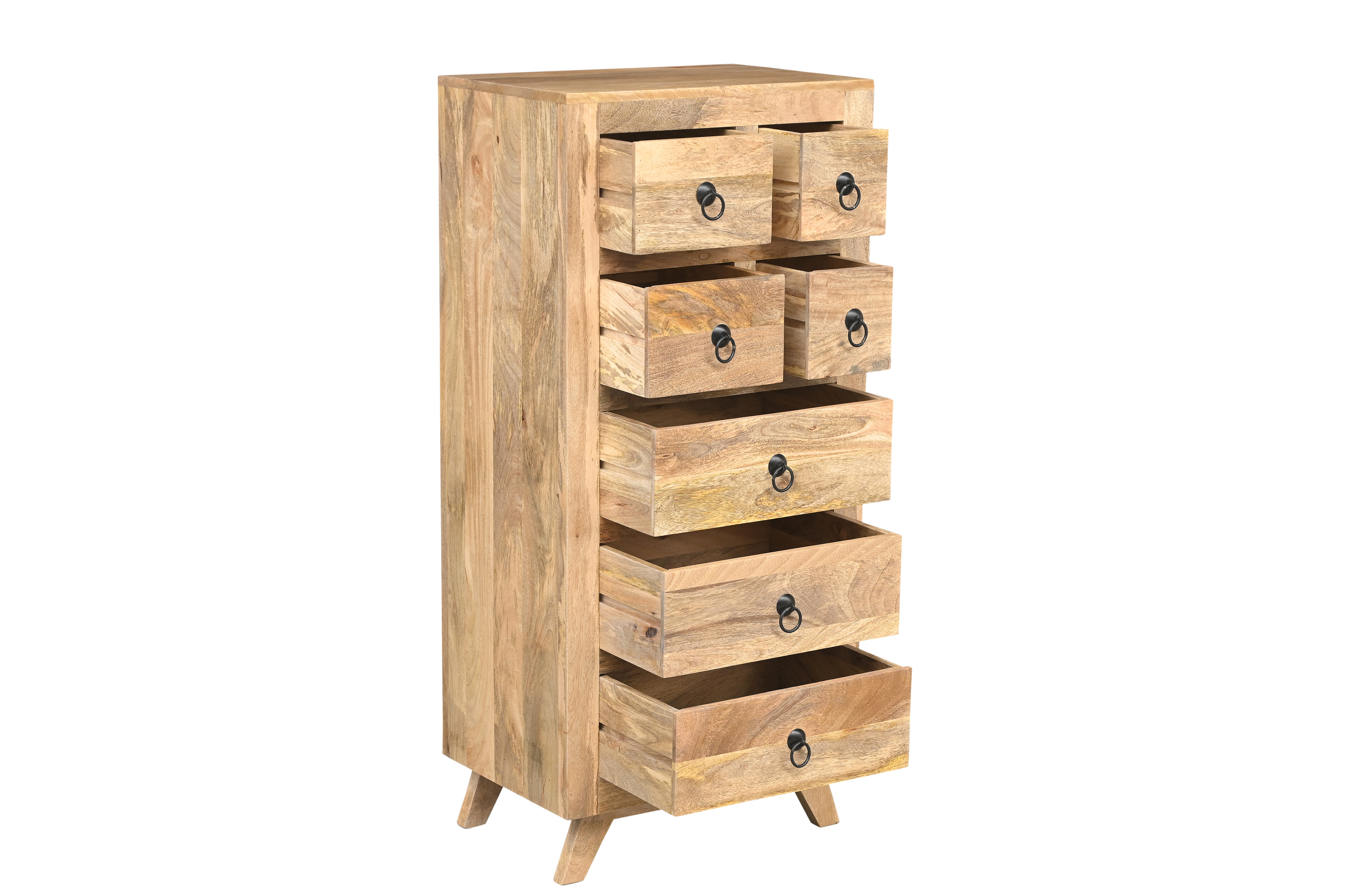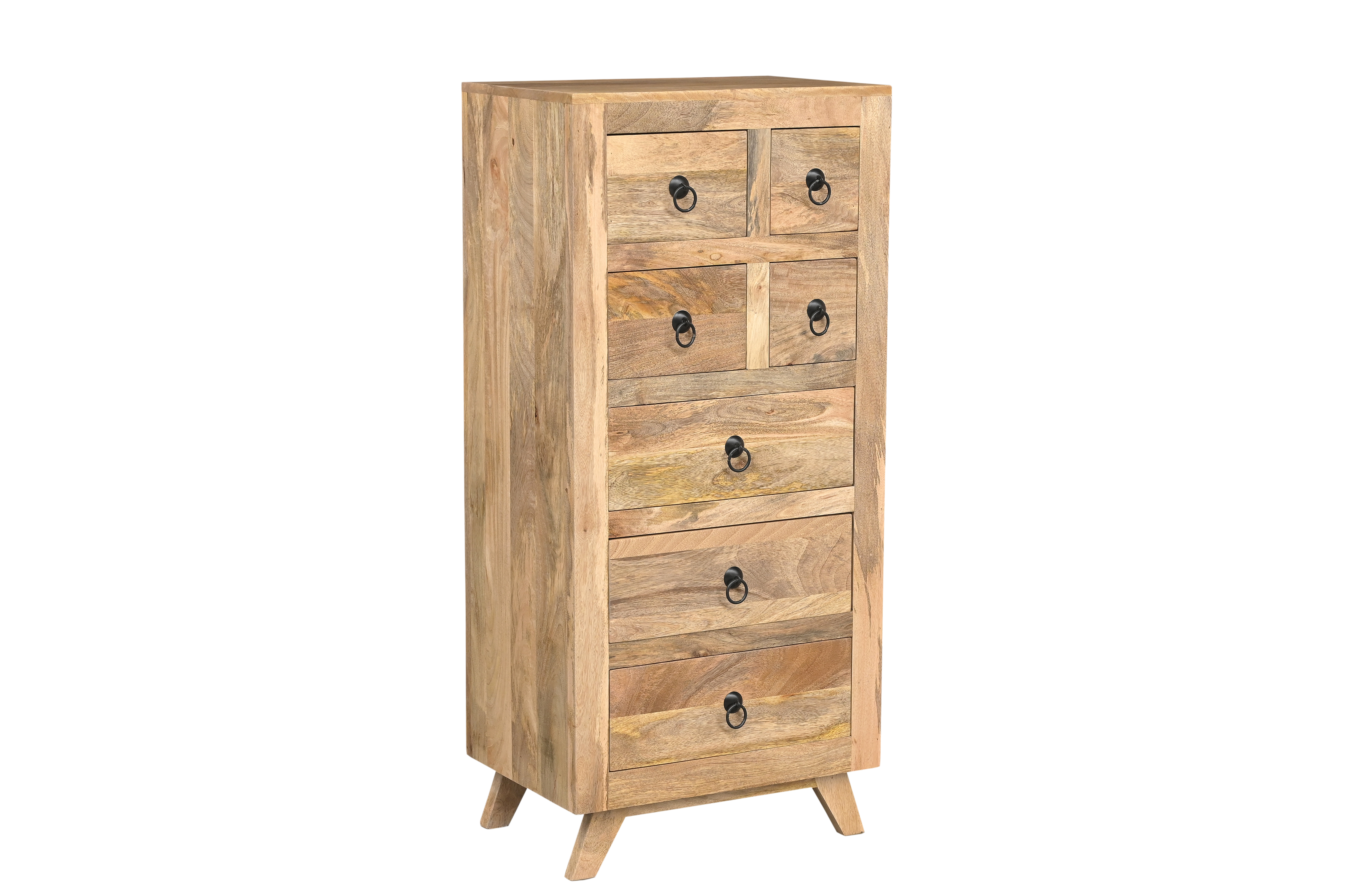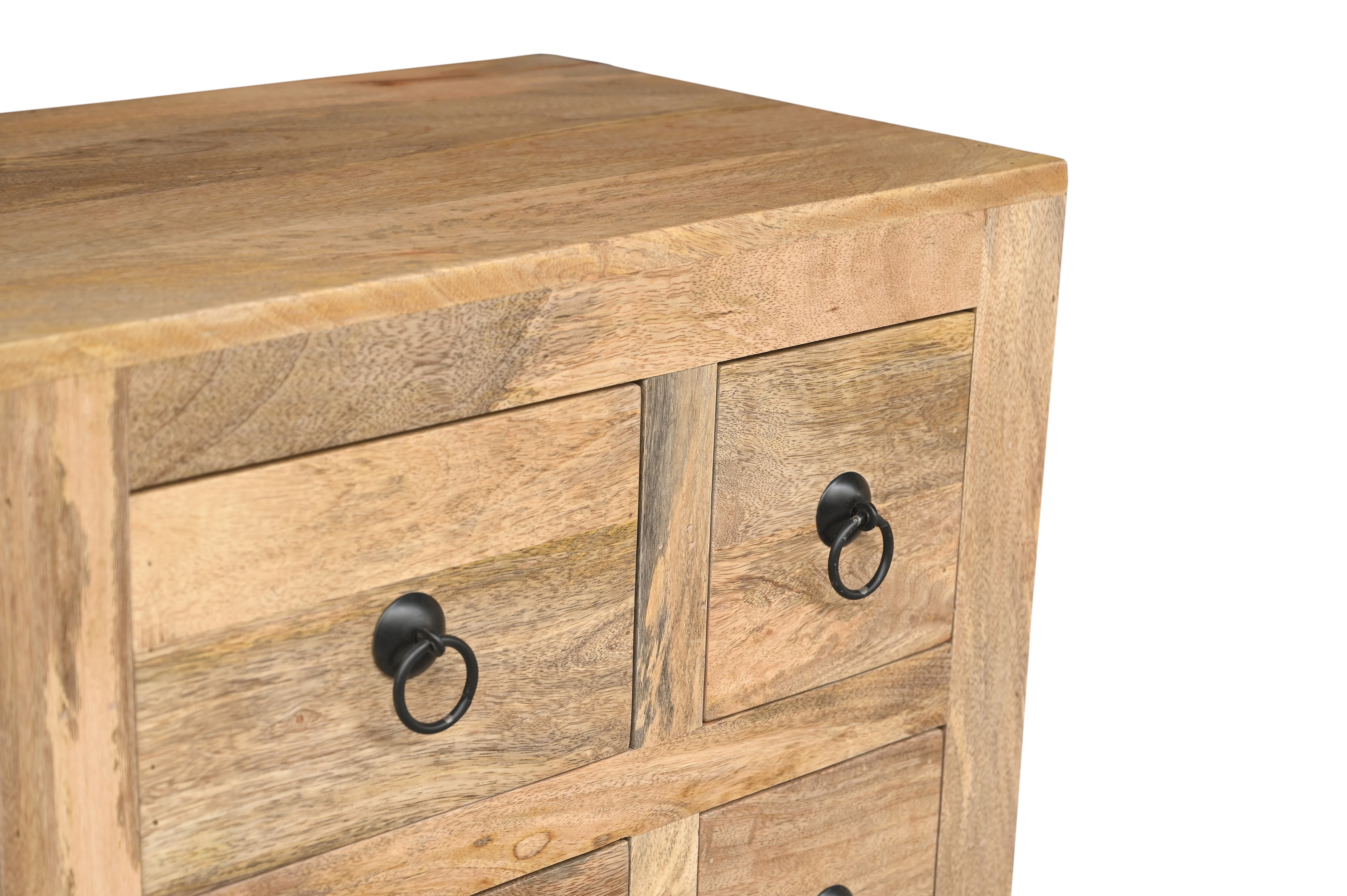 Wyjątkowa komoda inspirowana indyjskim rzemiosłem, wykonana z naturalnego drewna mango, zachwyca autentycznym charakterem i ciepłą, naturalną kolorystyką. Każdy egzemplarz jest niepowtarzalny – widoczne usłojenie, subtelne różnice odcieni oraz delikatne przetarcia podkreślają szlachetność materiału i rękodzielniczy styl mebla.