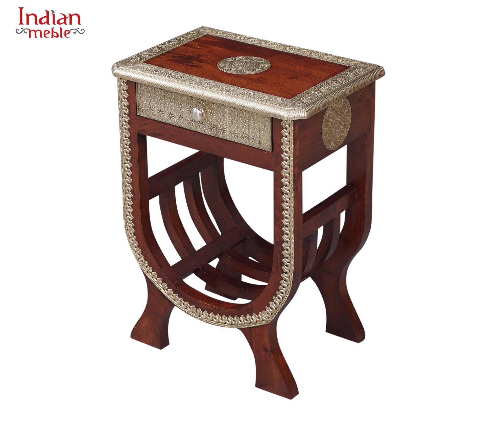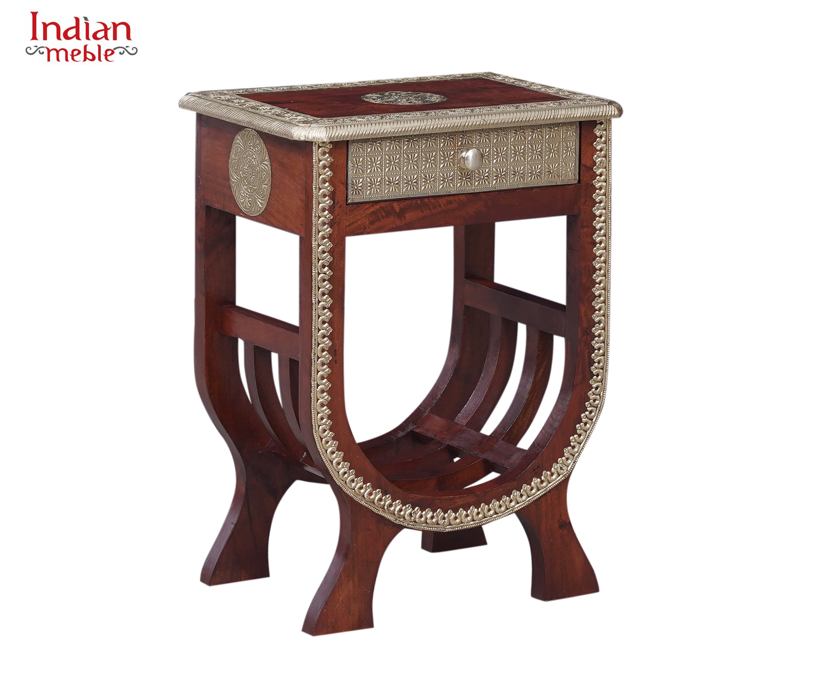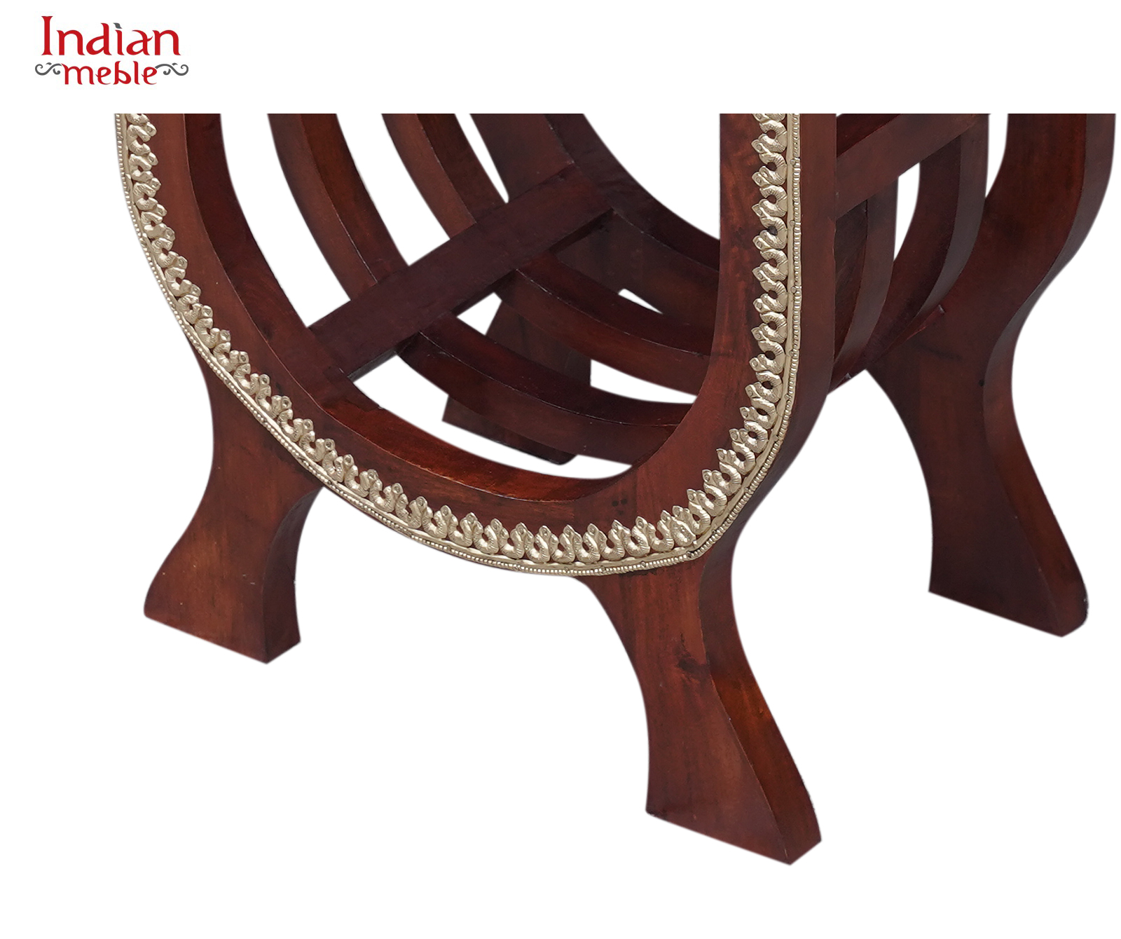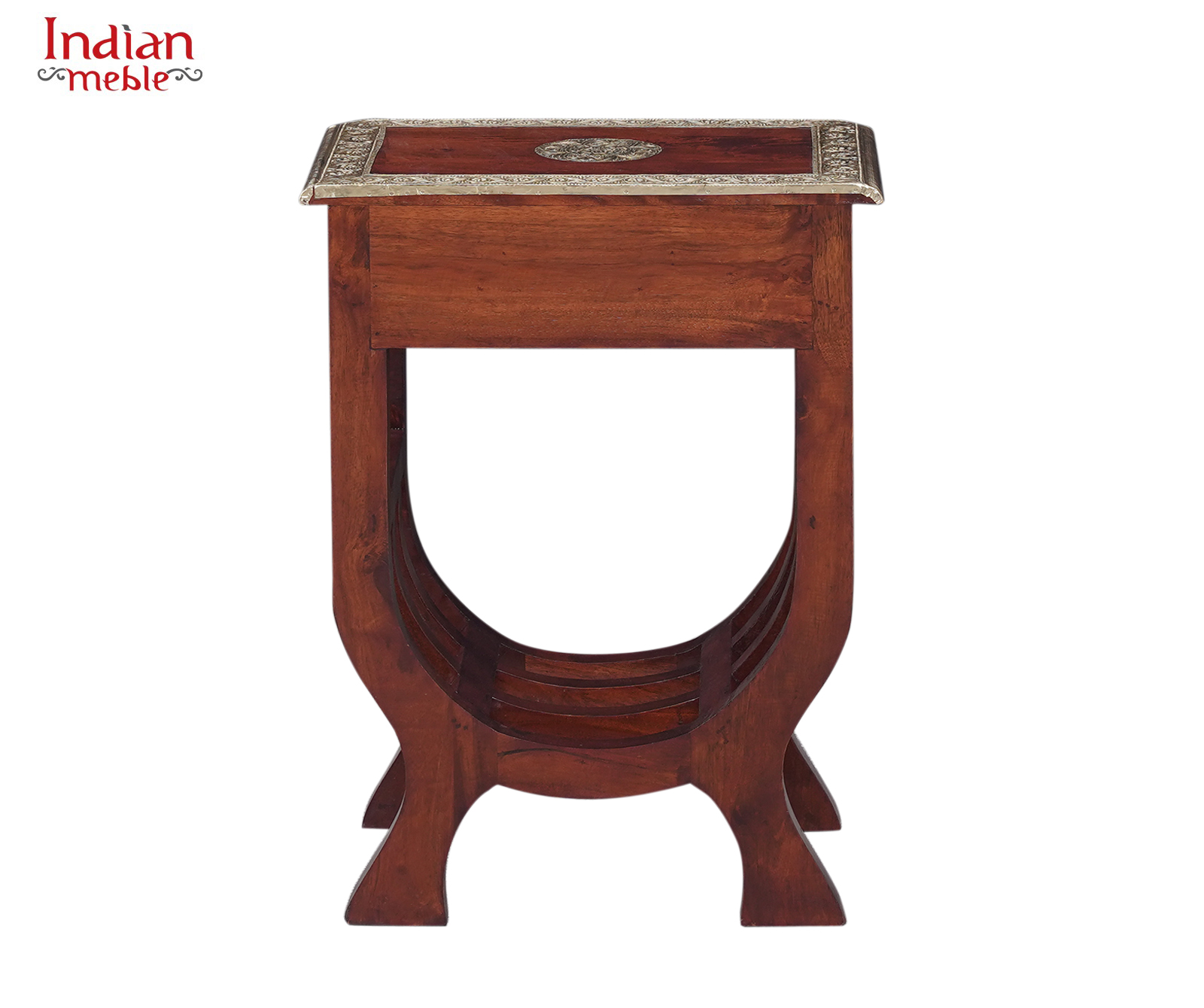 Stylowa konsola wykonana z litego drewna mango, wyróżniająca się elegancką formą oraz bogatymi zdobieniami inspirowanymi orientalnym wzornictwem. Ciepły odcień drewna w połączeniu z jasnymi, dekoracyjnymi elementami tworzy wyjątkowy i luksusowy charakter mebla.